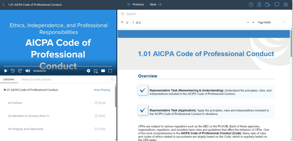 Becker is frequently at the top of my lists because their courses are just so reliable; they’re so consistently well-organized, effective, and even entertaining enough to hold my interest (which I cannot emphasize the importance of enough for CPA exam preppers). I found it easy to watch multiple bite-sized video lessons in one go, and the animated instructors made this even easier. Many of the presenters have palpable energy, passion, and even strong senses of humor, making lectures a lot more enjoyable than any I had when I was prepping for the CPA exams.
