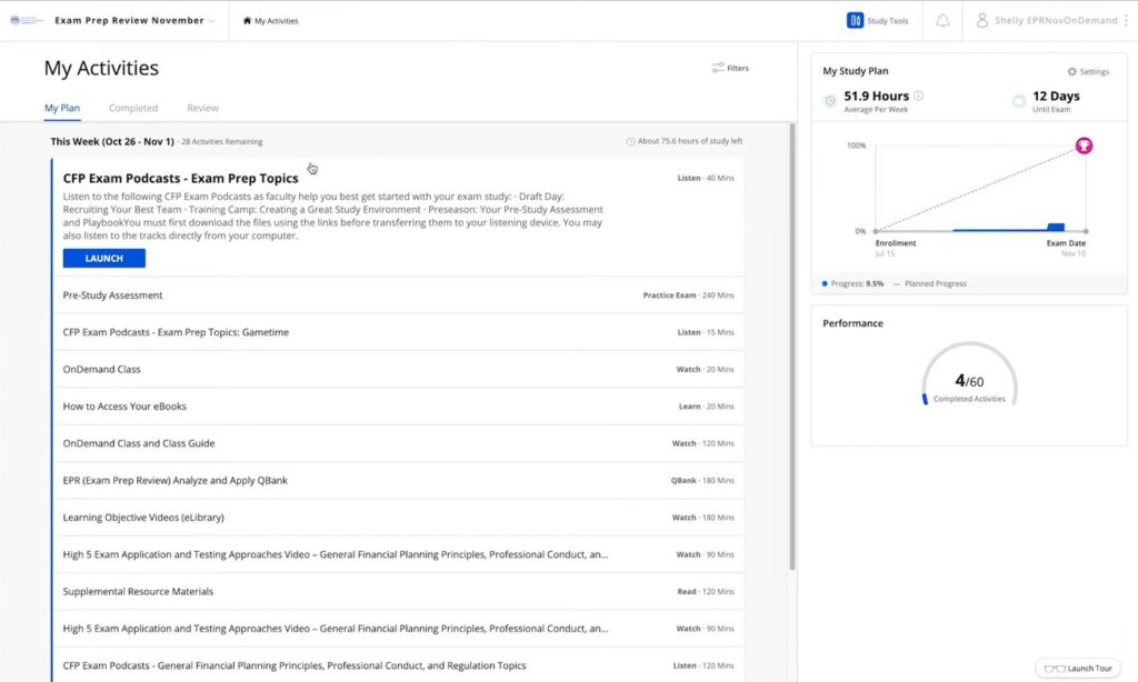 With Kaplan, I immediately noticed how well-organized the material was. The curriculum follows the CFP® Board’s outline closely, and that made it easy to trust I wasn’t missing any core topics. Each section flowed naturally into the next, and the practice assignments felt like they reinforced the lessons rather than piling on busywork. I also liked that Kaplan’s pacing gave me enough time to sit with tough concepts without getting lost in the weeds. Overall, it felt like a balanced roadmap that kept me moving forward at a steady pace.