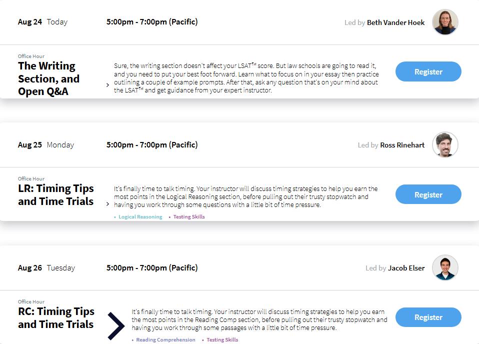 - 60 hours of live and on-demand lessons through Kaplan’s LSAT Channel