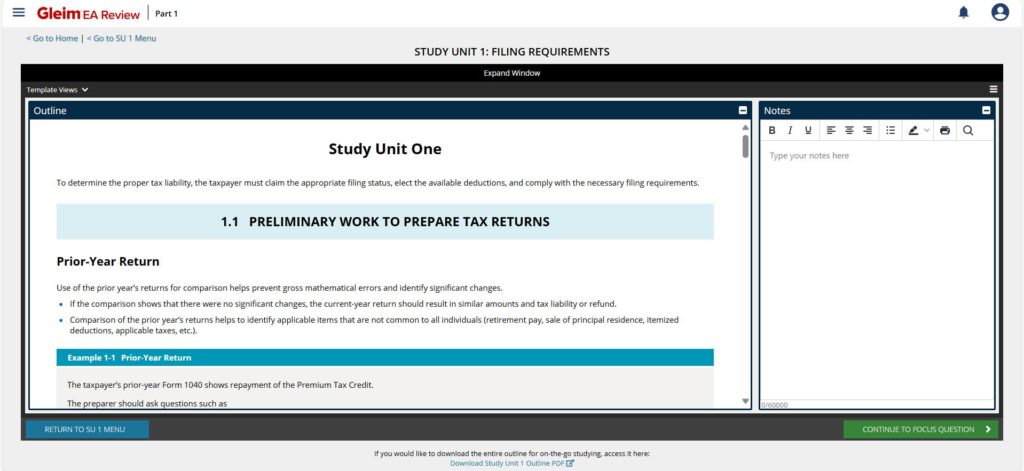 Gleim is a popular EA exam prep provider for a number of reasons, but I’d argue that the most important is their longstanding history as a resource for enrolled agents. Their EA courses have been around for over 50 years, and they’re the preferred provider of the National Association of Tax Professionals. Gleim furthers that trust with a money-back pass guarantee and unlimited access until you pass in the Premium Review System, hopefully allowing students to study with a little less pressure on their shoulders. However, accolades alone shouldn’t sell you on a course: the experience should.