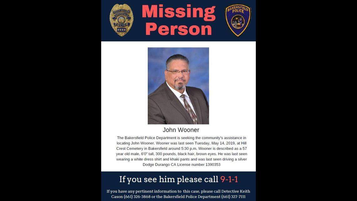 Wooner’s family has decades-long ties to the area – his late father, Orval, was the police chief and later, first city manager of nearby Arvin — but Cantu said Wooner asked his wife where his father was buried before going to the Bakersfield cemetery where he was last seen.