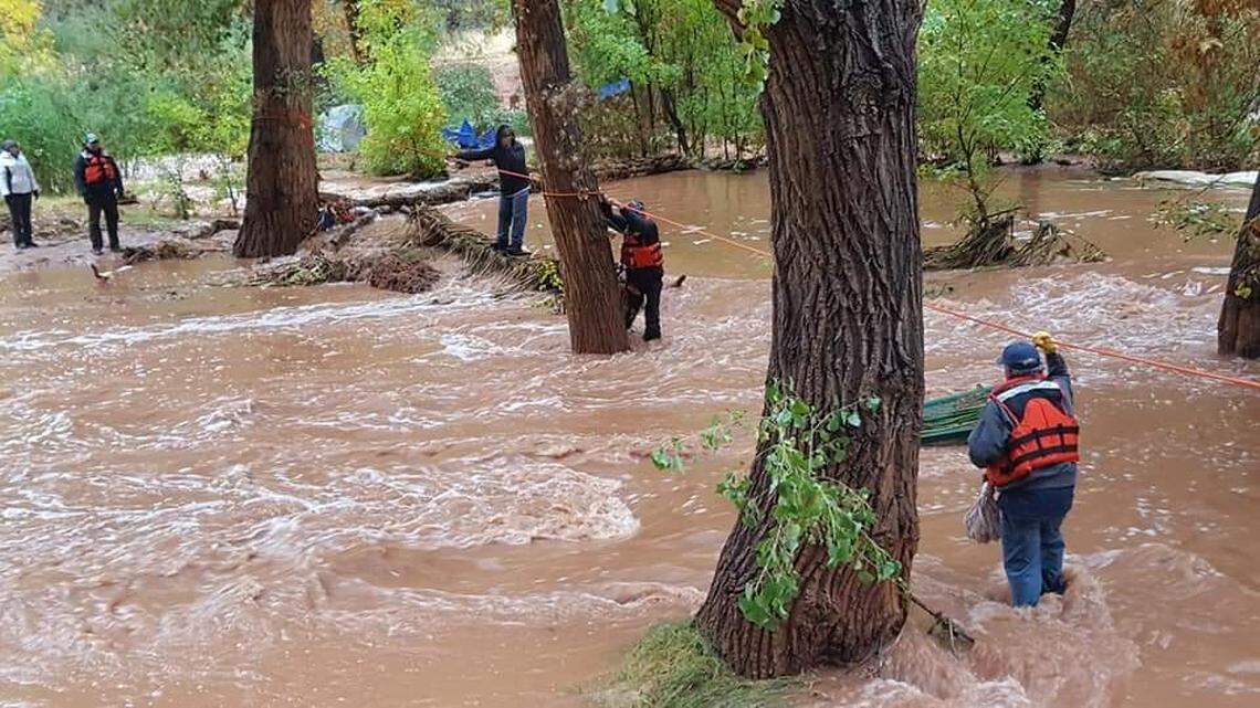The other stranded group of 18 was stuck on another island. It had been accessible by footbridges before the flash flood washed away those paths. A rescue team from the local tribe arrived in the daytime of Nov. 29 to help. The water had receded enough by then to walk a rope across the river, which was used to start guiding people across. Corley, who is trained in swift water rescue, went over to the island to walk back with a man who had injured his shoulder. That was the only injury Corley was aware of that day.