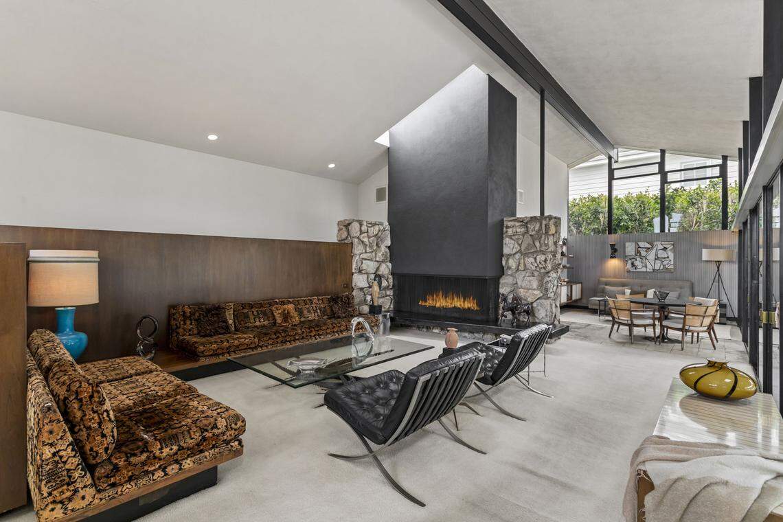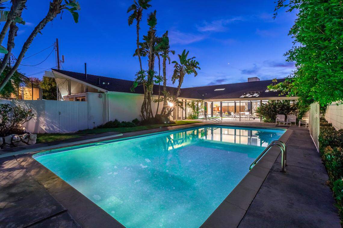 “Walls of glass flood the home with natural light while the lush landscaping and pool draw your attention outside for indoor/outdoor living, hallmarks of A. Quincy Jones and the Southern California lifestyle,” the listing on Sotheby’s International Realty says.