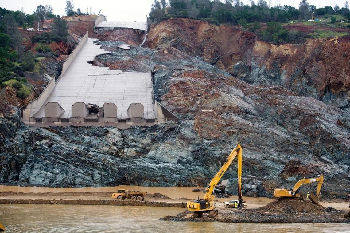 The main spillway failed catastrophically in February 2017, when a large and cratering fracture formed amid weeks of heavy rain, leading operators to curtail water flow onto the emergency spillway.
