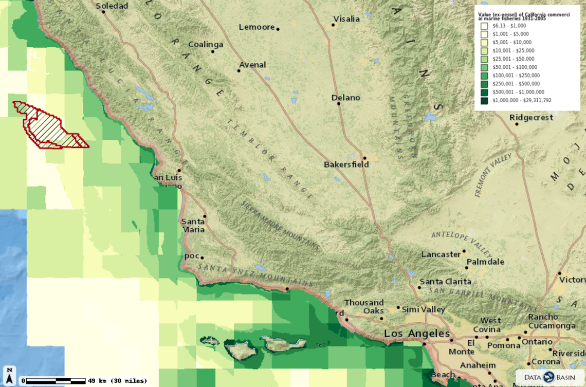 Data gathered from 1931 to 2005 by researchers with the National Marine Fisheries Service roughly show that the broad economic impact of blocking off the entire Morro Bay call area would be less significant than if the wind turbines were located closer to shore or in other areas along California’s coast because the fisheries located in the Morro Bay call area bring in less money than those in other areas.