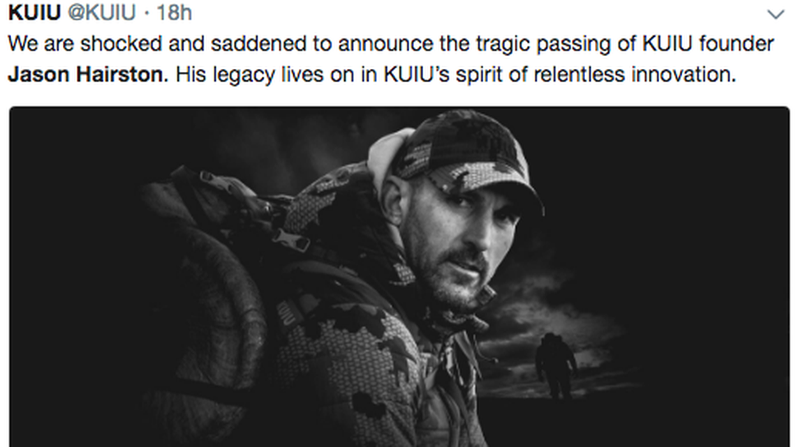 “We are shocked and saddened to announce the tragic passing of KUIU founder Jason Hairston,” KUIU’s official account tweeted. “His legacy lives on in KUIU’s spirit of relentless innovation.”